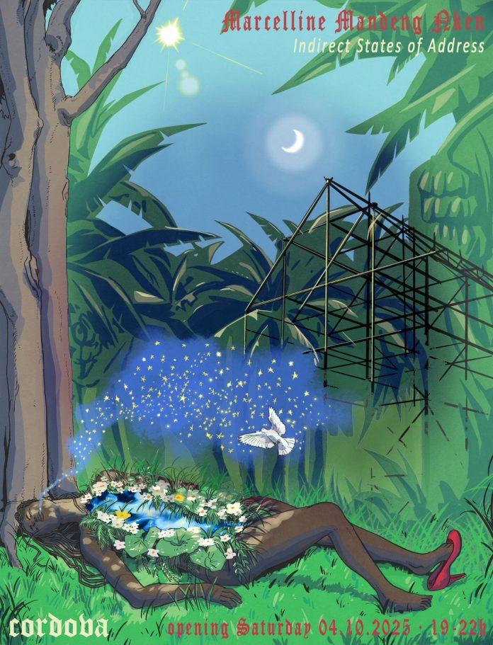Del 4 de octubre al 15 de noviembre de 2025, el espacio sin ánimo de lucro Cordova, en el corazón de Ciutat Vella de Barcelona, presenta Indirect States of Address, la primera exposición individual en España de la artista camerunesa Marcelline Mandeng Nken (Yaundé, 1993). La muestra convierte al teatro en un organismo vivo y convoca a una figura fantasmática —la madwoman— para desestabilizar las narrativas de domesticidad y control que han definido históricamente los cuerpos y las subjetividades femeninas.