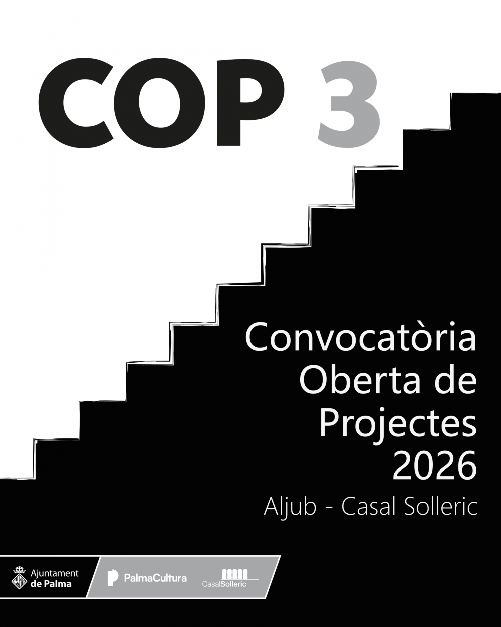 El Ayuntamiento de Palma, a través de la Coordinación General de Cultura y Turismo, presenta una nueva edición de la COP (Convocatòria Oberta de Projectes), un programa dedicado a impulsar la creación contemporánea y promover el contexto artístico local. La convocatoria va dirigida a artistxs, comisarixs y colectivos interesados en desarrollar propuestas que indaguen en la experimentación artística.