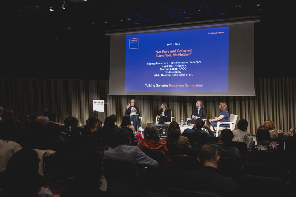 La semana pasada se celebró la 11ª edición del Talking Galleries Barcelona Symposium, la conferencia anual organizada por Talking Galleries, el think tank que desde 2011 impulsa el debate y la reflexión en torno al sector galerístico y el mercado del arte. Entre las distintas sesiones del programa destacó Art Fairs and Galleries: I Love You, Me Neither, un panel que reunió a Rebeca Blanchard (Prats Nogueras Blanchard, Barcelona / Madrid), Luigi Fassi (Director de Artissima) y Maribel López (Directora de ARCO), bajo la moderación de Alain Quemin, profesor de sociología del arte en la Sorbonne Université.