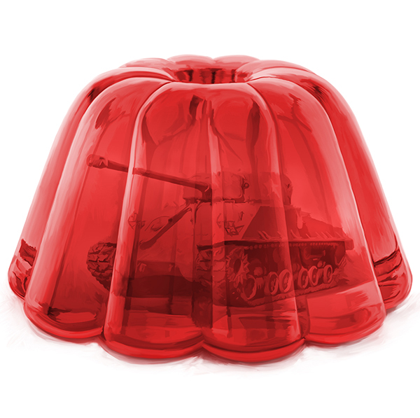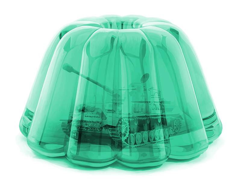 Esta operación visual y conceptual es, en esencia, una reflexión sobre el modo en que la violencia se representa y se consume en la sociedad contemporánea. En un presente donde la experiencia del conflicto se filtra a través de pantallas y dispositivos tecnológicos, la guerra se convierte en imagen —y la imagen en espectáculo—. Lo bélico, mediado y estetizado, deja de herir directamente para ser digerido, consumido y compartido. Del Valle expone este proceso al desnudo: la gelatina no solo envuelve al tanque, lo traduce; lo vuelve parte de un relato visual que evidencia la distancia crítica entre la realidad de la violencia y su percepción social.