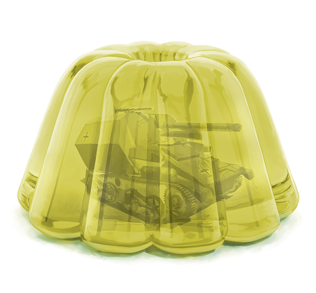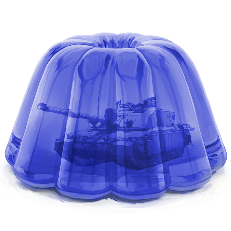 En el núcleo de esta serie late una paradoja visual y semántica de gran precisión: tanques encapsulados en cuerpos blandos y translúcidos de gelatina, cada uno vinculado a un color hexadecimal derivado de un mineral. Este lenguaje formal, aparentemente simple, opera como una estructura simbólica densa. La dureza de la máquina bélica, concebida históricamente como emblema de poder, control y agresión, se ve suspendida y contenida dentro de una materia blanda y luminosa, asociada culturalmente a lo doméstico, lo lúdico y lo infantil. De esa fricción emerge un territorio inquietante, en el que la violencia no desaparece, sino que queda latente, sublimada bajo la apariencia seductora de una forma casi inocente.