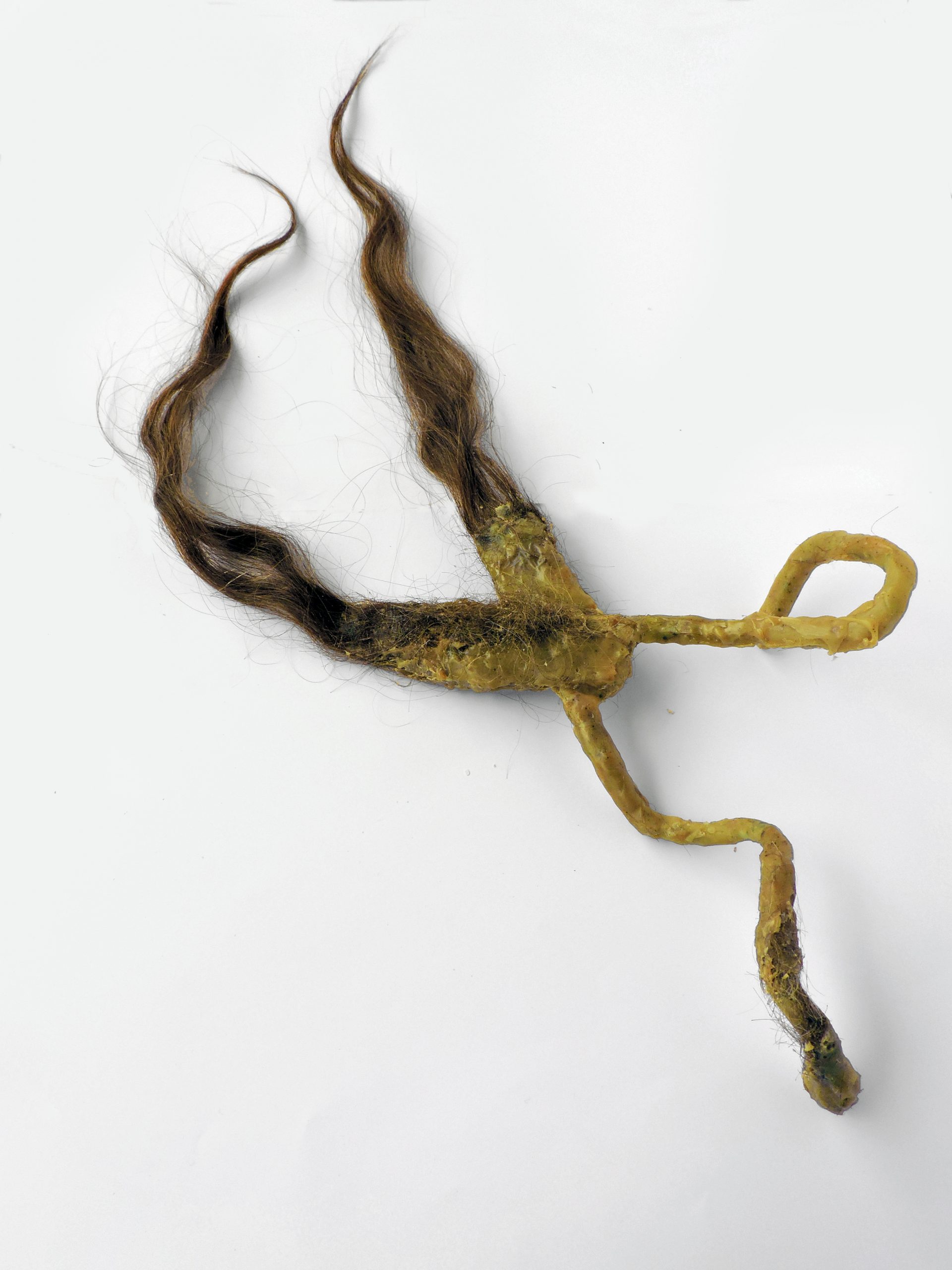 Monstruas y hadas, primas hermanas es una muestra basada en la instalación y en el objeto escultórico. Lana de oveja, cardos, pelo humano, corteza de árbol … son algunos de los materiales tomados respetuosamente de la Naturaleza para dar forma a las piezas de la