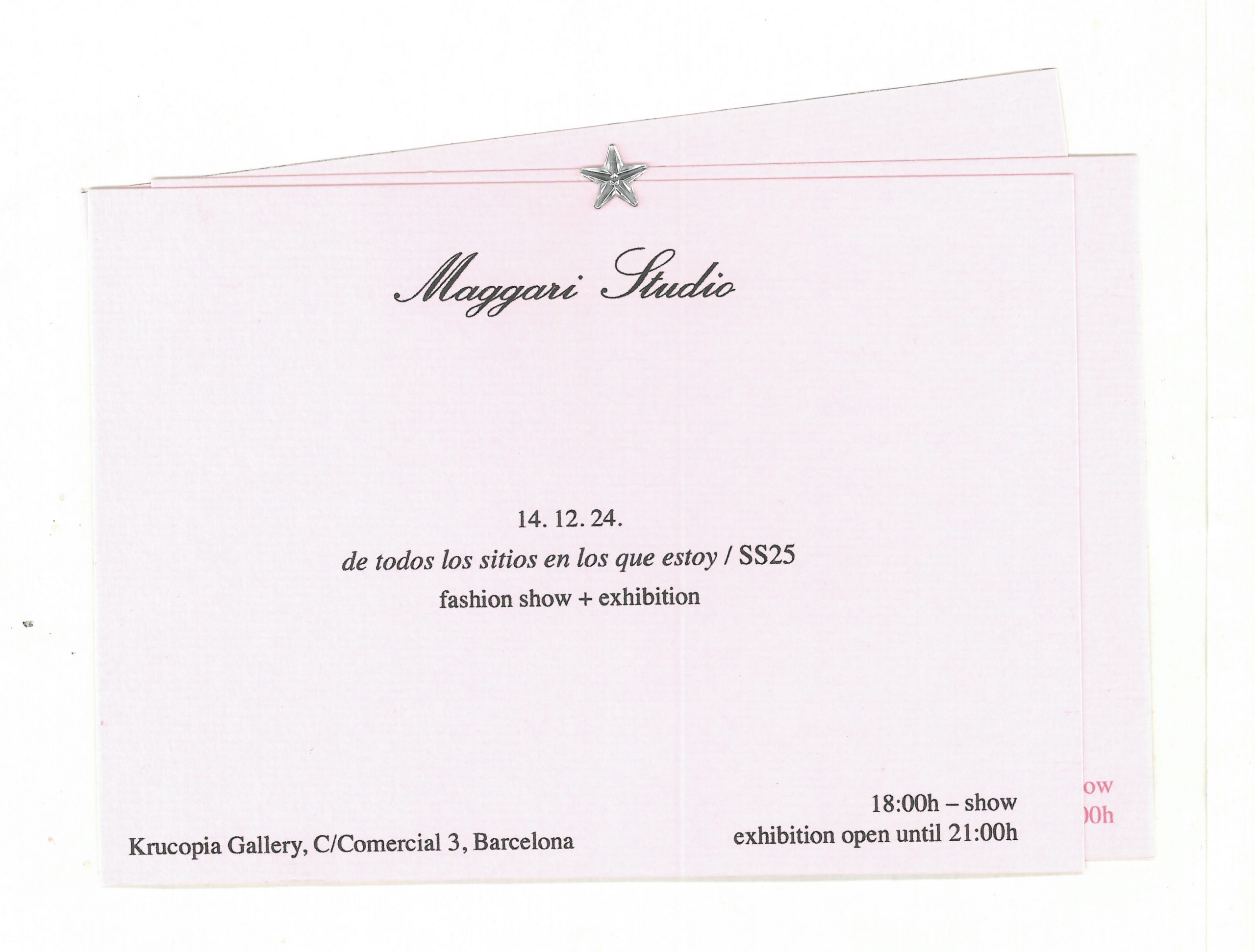 Maggari Studio presenta el Capítulo 1 «De todos los sitios en los que estoy», que toma forma en un desfile performático+exposición. Un escenario que combina pintura, escultura, moda, sonido y danza, y que gira en torno a los espacios intermedios, y lo que existe en esos mundos.