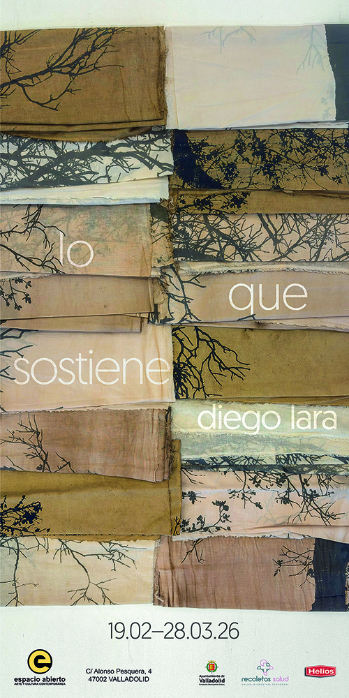 Lo que sostiene, del artista Diego Lara, propone un recorrido sensorial y material por la memoria viva de los ecosistemas, invitando a repensar nuestra relación con la naturaleza y los ciclos de vida. La obra textil que da nombre a la muestra se presenta como pieza central que atraviesa el espacio