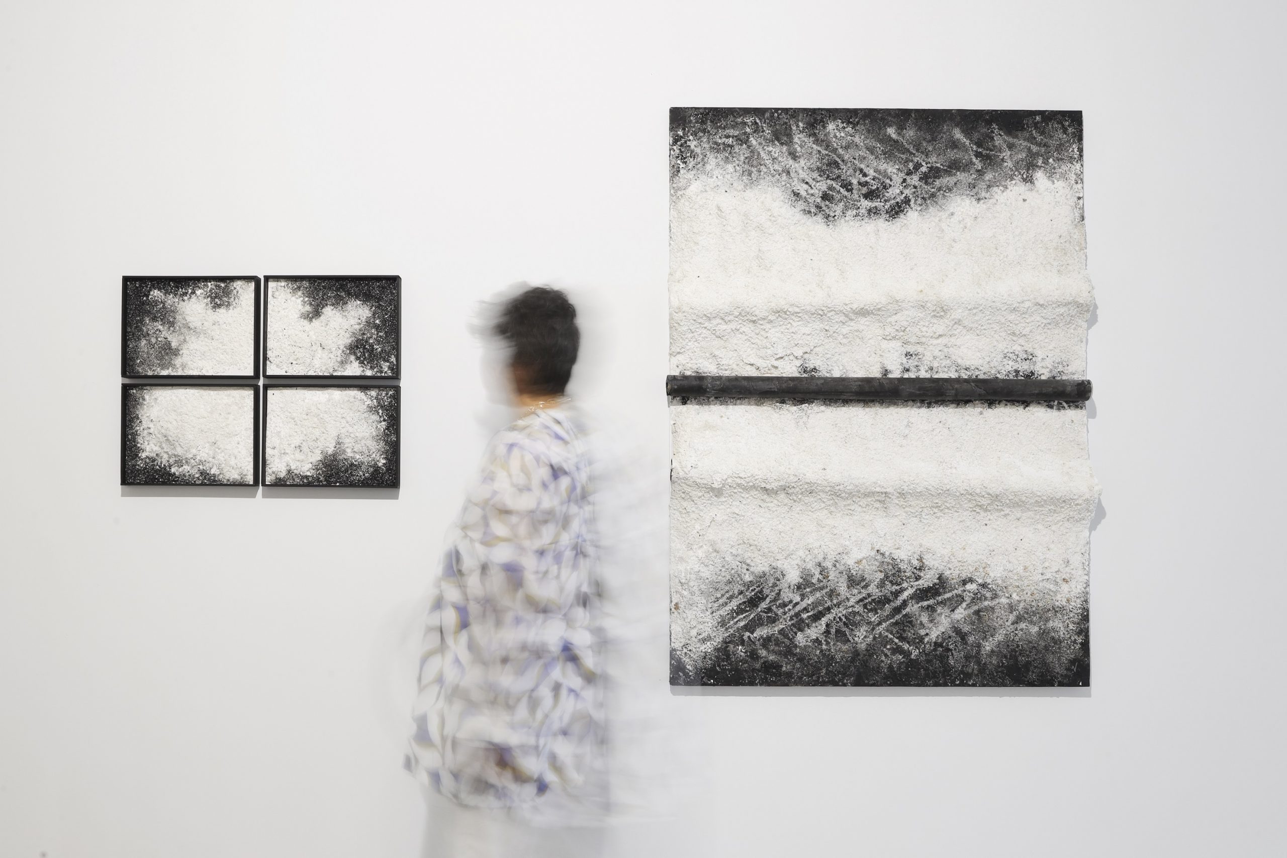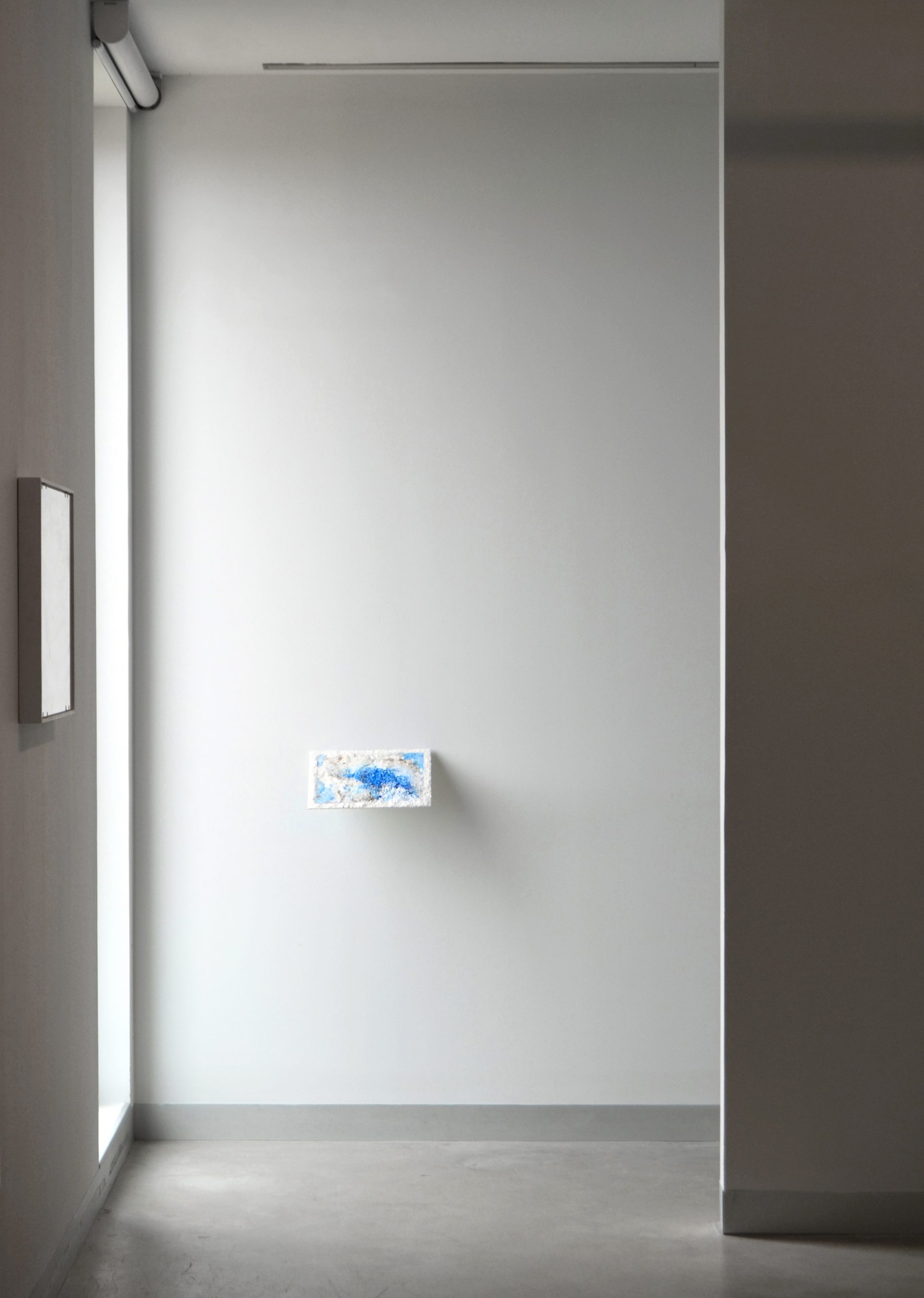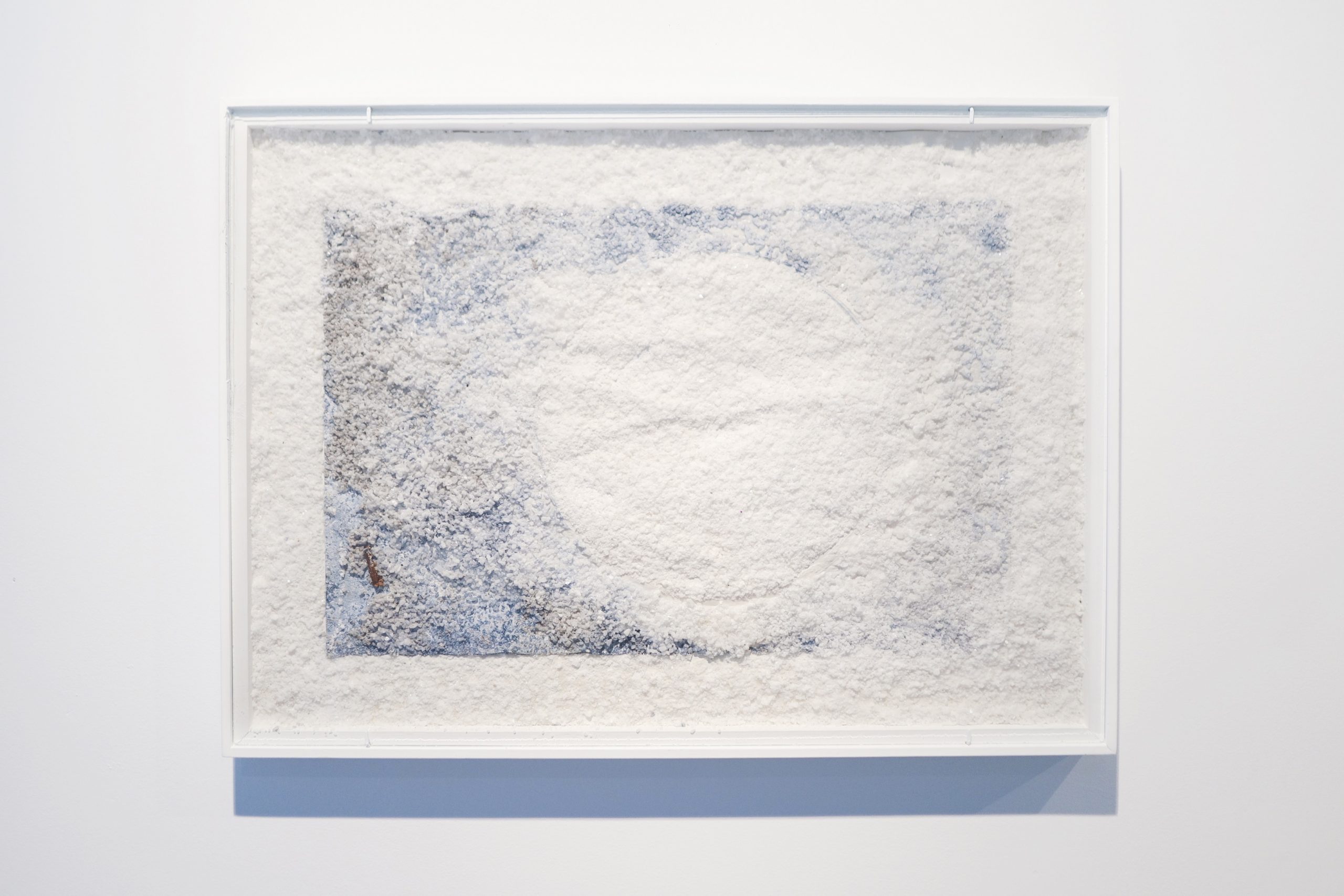 Es posible contemplar el universo en este pequeño grano tallado por el sol, el viento y el mar. Del todo a la parte y de la parte al todo, la sal interpreta un espejo de la naturaleza con nosotros mismos y del drama de la historia humana. Sal, agua y aire desvelan su paralelismo con la condición humana, la vulnerabilidad y la resistencia, el sudor de la contienda y las lágrimas derramadas ante la pérdida. Como cristal olvidado del mar, cada grano representa en esta exposición una lágrima y construye una mirada crítica, poética y ecológica sobre el calentamiento global, el equilibrio y la concentración.