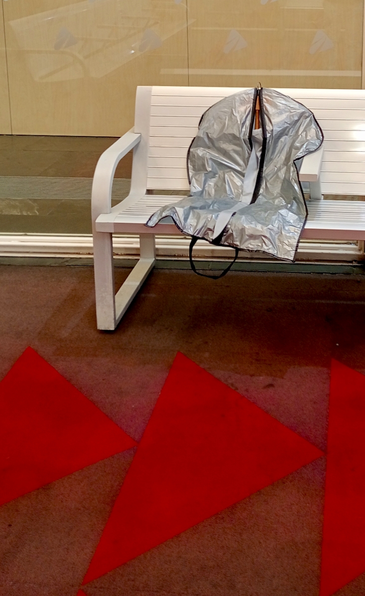 ¿Qué condiciona tus ficciones? es una intervención, breve y puntual, que activará la indumentaria de egolactante, 2004, que está en la muestra.