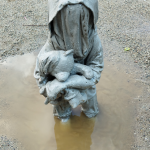 Las esculturas, realizadas con ropa real aportada por madres y padres migrantes y pintadas de blanco, representan a los infantes que han perdido su origen y su niñez. La ropa, a veces, es la única cosa que pudieron llevarse y, por esta razón, se transforma en ejemplo de resiliencia y resignificación, llevándose consigo recuerdos, narrativas y afectos. El color blanco, por otra banda, simboliza la pureza y la inocencia de los niños, capaces de sobrevivir y adaptarse a las adversidades del exilio. El rostro de las estatuas que está solo desdibujado no pretende representar una identidad específica o una persona concreta, sino mostrar una situación colectiva y universal donde cada cual puede identificarse.