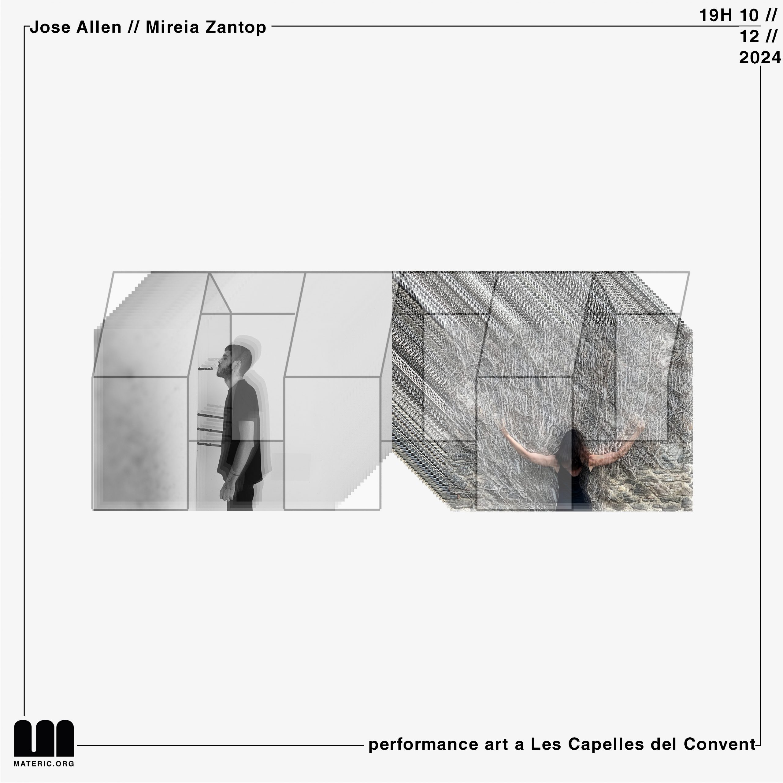 Inauguración de 22cubic residencia artística con dos obras de performance de les artistas Jose Allen y Mireia Zantop, seleccionades para crear una obra de arte de acción, de inacción o de performance site-specific en las Capillas del Convento de Sant Agustí de Barcelona. La nueva sede de MATERIC.ORG