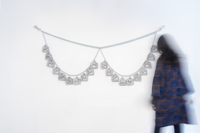 Karla Zipfel examina los fenómenos sociales a través del lenguaje del diseño visual. Las referencias al mundo de la moda, a la arquitectura o a las interfaces digitales se combinan en objetos híbridos. Es frecuente encontrar en su creaciones la forma de una nube como metáfora que remite al ámbito digital.