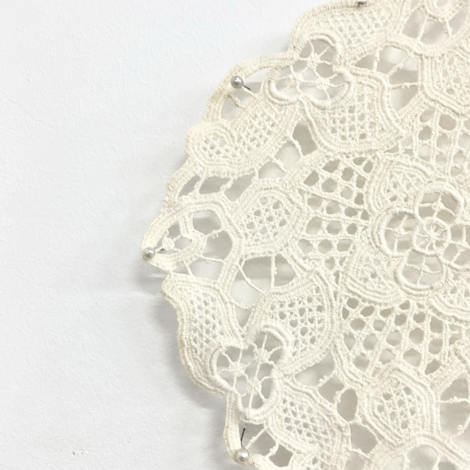 “Maintenance” és una instal·lació tèxtil que consisteix en una sèrie d’imatges i teles trobades que han estat fusionades, proposant una forma alternativa de contar històries. L’obra fa referència al “Manifest for Maintenance Art” (Laderman Ukelis 1969), que analitza com la societat es divideix en dos sistemes bàsics: el desenvolupament i el manteniment. Desenvolupament: associat a l’avantguarda, allò que és individual i innovador. Manteniment: associat a tasques de conservació, repetició i cura. Les teles seleccionades a intervenir són teixits intricats fets a mà, històricament associats amb allò femení i allò domèstic. Es col·loquen en el context d’una galeria com a objectes trobats, a més de dialogar amb les fotografies que s’hi han traduït sobre ells. La tranquil·la naturalesa repetitiva de les teles i les fotografies que evoquen diferents exemples de “manteniment” (de la terra, la llar, la ment i el cos, així com un manteniment més teòric de les estructures socials/polítiques) teixeixen una constel·lació que proposa una reavaluació del progrés i el manteniment. El treball explora la narrativa del treballador de manteniment contemporani, a l’era de la sobresaturació, la sobreprescripció i la polarització extrema. Tots som treballadors de manteniment? Si és així, què és el que reforcem de manera constant, monòtona i obsessiva?