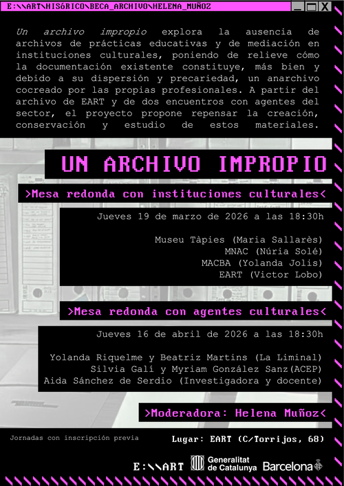 Mesas redondas para pensadas para reflexionar en relación a la investigación llevada a cabo en el proyecto «Un archivo impropio» de Helena Muñoz Villena dentro de la Beca Archivo de EART.