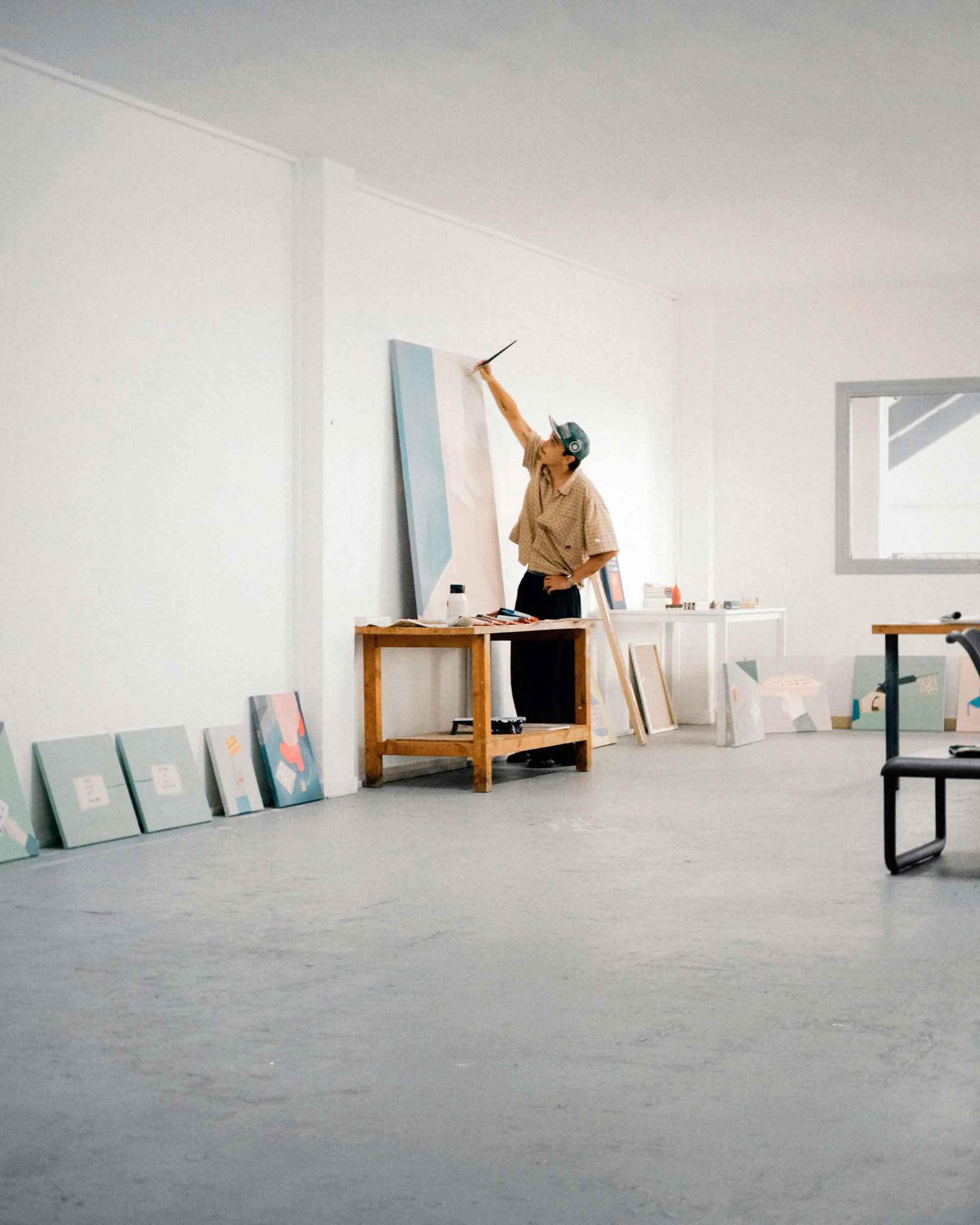 En Un impulso de último momento, Román establece en sus piezas una relación entre CDMX y Barcelona a través de los azulejos que aparecen en sus interiores. El artista conecta, de un modo más emocional que mimético, la talavera mexicana con la rajola modernista, separadas por kilómetros pero ambas con origen en la península ibérica. Su interés por los azulejos remite también a Pedro Almodóvar, referente “pictórico” para el artista, con quien comparte esa carga estética que generan los colores en el entorno y cómo influyen en la creación de la atmósfera.