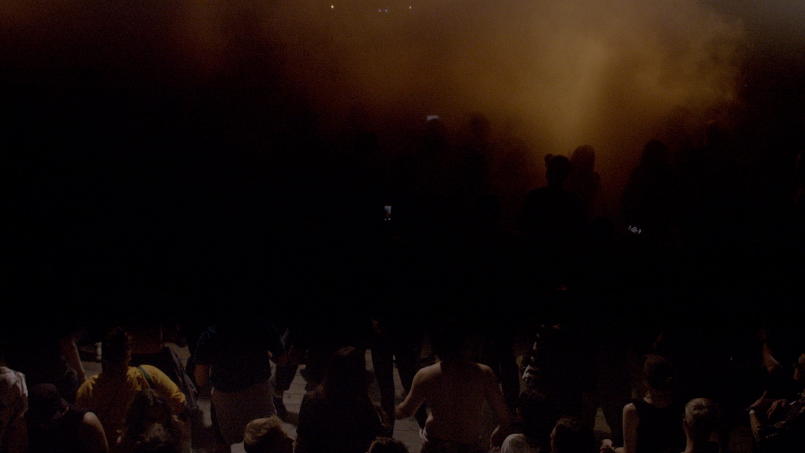 La doble proyección de las películas Dedicated To The Youth Of The World II y III nos sumerge en el contexto cronológico peculiar de Ucrania progresivamente invadida y después en guerra declarada. La segunda versión del filme es una recreación de la primera, producida con el mismo título en el 2019. Dedicated To The Youth Of The World II documentó el rábano Cxema en Kiev. Los orígenes de Cxema están íntimamente relacionados con el malestar que, a raíz del levantamiento de Maidan, se desarrolló progresivamente en los últimos diez años hasta la actual etapa de la guerra en todo el país. Aunque originariamente la pieza fue encargada por el festival Cxema, sus nueve minutos trascienden la noción de documentar un rábano. La película se erige ahora como un documento icónico de la vitalidad artística de Ucrania mientras ya estaba bajo ataque, pero también es el retrato colectivo de una juventud dañada y superviviente. El filme se rodó en el gran pabellón del Dovzhenko Film Studio de Kiev, que se transformó en una zona de rábano masiva para la ocasión. La cámara siguió de cerca a los participantes en el nuevo día, una realidad que muchos no parecían aceptar. Bastan unos segundos para eternizar una postura, una mirada, codificando una cierta atemporalidad en el gesto. Los cuerpos de las modelos son lo que parecen: contemplativos, agotados, algo desconcertados, algo místicos, con la cara sensualmente cercana a un grado de emoción cero. Salen de una alteridad existencial, no de la fiesta en sí misma, sino de una composición de tiempo y lugar, de duración corporal y funcionamiento del lugar, un acondicionamiento técnico específico que comporta formas de devenir y de afectación de atención en ella/ellas. Ravers saliendo de la fábrica. Dedicated To The Youth Of The World III, en contraposición a esto, se creó en un contexto completamente distinto. Los artistas decidieron recrear la fiesta en septiembre de 2023 bajo una amenaza constante, centrándose en los miembros de la comunidad que sustituyeron a los participantes de rábano anteriores, después de una pandemia prolongada y una invasión rusa a gran escala de Ucrania.
