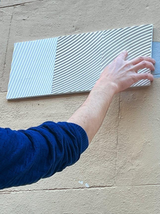 Una hora más de luz se activa fuera de la sala con un paseo colectivo. Las piezas se trasladan al espacio público para experimentar su comportamiento bajo luz directa, en relación con la ciudad, el cuerpo y la percepción.