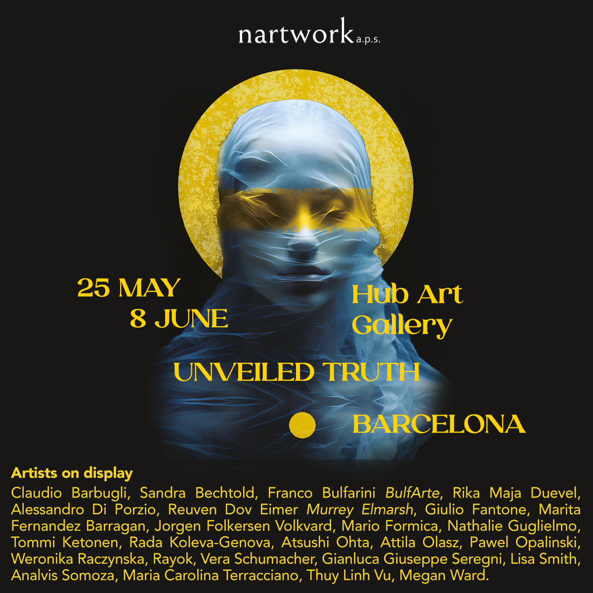 Del 25 de mayo al 8 de junio de 2024 en Barcelona, en Hub/Art, el colectivo internacional Unveiled Truth organizado por Nartwork aps. La exposición incluye obras de 25 artistas de 12 países.