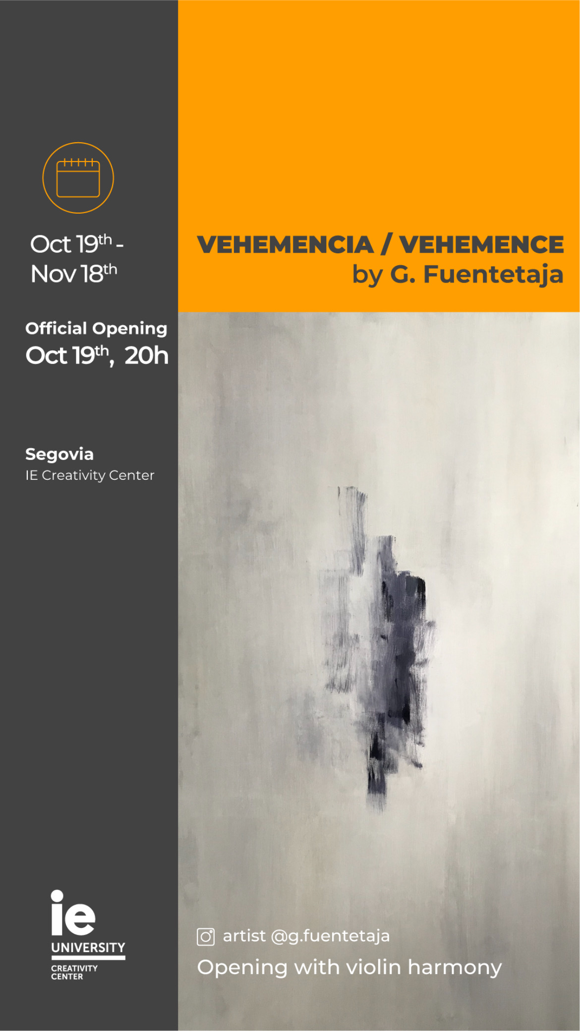 Hasta el 18 de noviembre puede visitarse la exposición «VEHEMENCIA – G. FUENTETAJA» en la sala de exposiciones de la IE University. Tras haber expuesto en varios países europeos y haber colgado sus obras en multitud de ciudades españolas, el pintor segoviano tiene gran ilusión en que puedan verse, algunas de ellas, en su tierra natal.