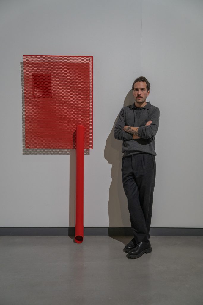 En diálogo con esta atmósfera inmersiva, Metal del verano, de Christian Lagata (Jerez de la Frontera, 1986), transforma la sala T3 en un conjunto escultórico que emerge de los márgenes de la arquitectura y de los sistemas industriales. Lagata, cuya práctica indaga en la materialidad asociada a entornos productivos, combina metal, estructuras reutilizadas y técnicas de ensamblaje para generar un paisaje compuesto por respiraderos, drenajes, cajas de control o vallas reinterpretados desde la escala, la recombinación y la economía del residuo.