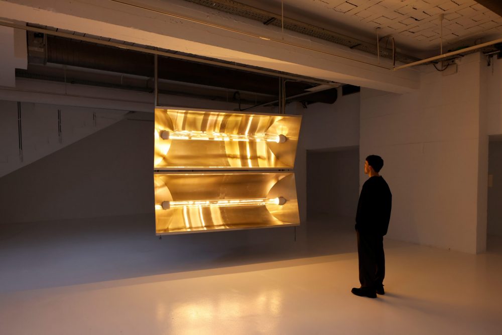 Zhang construye así un radiador enorme, colgado en el centro de la sala expositiva y concebido como emisor de energía simbólica y afectiva. La inversión de escala sitúa al público en la posición de la polilla y activa una reflexión sobre deseo, proximidad y exposición. La incandescencia aludida aparece como proceso de transformación material y perceptiva, un umbral en el que el calor altera estados físicos y experiencias sensibles. En este desplazamiento conceptual, el radiador funciona también como metáfora institucional: la propia institución puede leerse como ese cuerpo térmico que irradia energía cultural y discursiva hacia quienes orbitan a su alrededor.