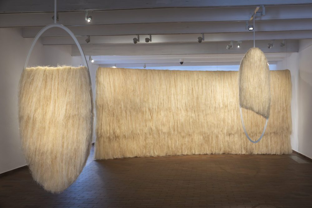 Desde sus primeras salas, la exposición propone una aproximación a la materialidad como archivo. Fibras vegetales, cerámica, vidrio, madera o tejido aparecen como portadores de historias vinculadas a economías extractivas, desplazamientos y sistemas de intercambio. El director del museo, Marko Daniel, subrayó durante la presentación que «Kiwanga es una artista que tiene la capacidad de trabajar con conceptos complejos y convertirlos en una obra de sencillez y cuidado», una cualidad que atraviesa todo el proyecto.