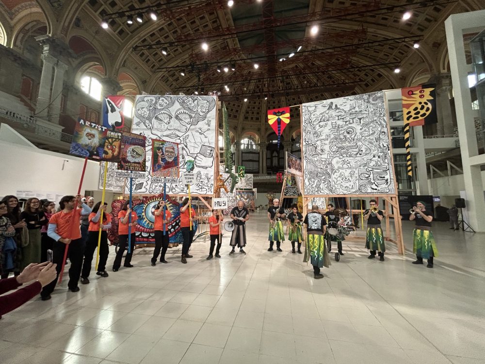 La instalación efímera en la Sala Oval no solo celebra la naturaleza, la comunidad y el arte como experiencias compartidas y utópicas, sino que plantea una pregunta de fondo sobre el papel del museo contemporáneo. Al activar prácticas festivas, rituales y participativas en un espacio emblemático del patrimonio artístico, Natura Centrum Est. Campamento Oval tensiona los límites entre lo institucional y lo popular, entre la conservación y la acción, entre el pasado y la urgencia del presente. En esa fricción se sitúa la potencia crítica de la propuesta: no como ilustración de un discurso ecológico, sino como experiencia vivida que interpela al cuerpo, a la colectividad y a la imaginación política.