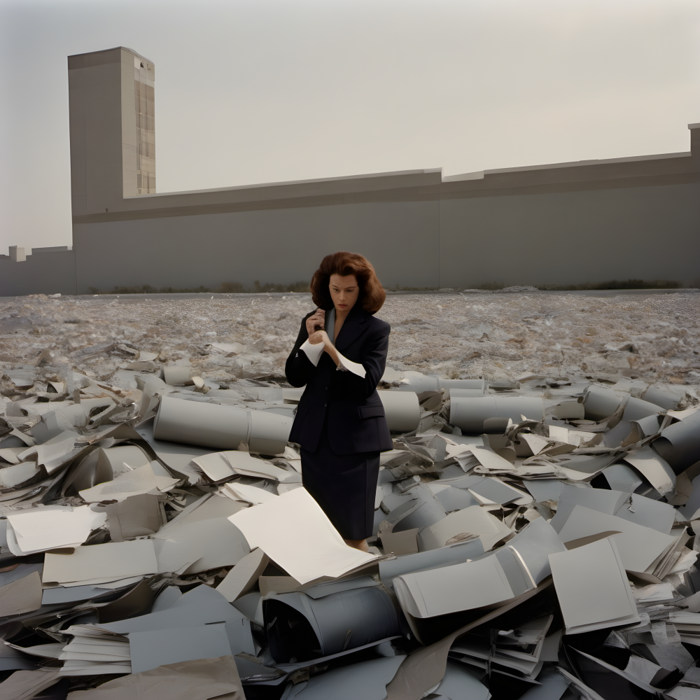 Aquí la inteligencia artificial trasciende su rol como herramienta artística. Se integra en la cadena de decisiones, asume tareas de control y reproduce, con eficiencia mecánica, la gramática del poder. Las imágenes generadas por IA no solo representan al funcionariado, sino que lo simulan, replicando sus gestos y sus espacios con una frialdad que subraya la deshumanización de los procesos burocráticos. La artista plantea así una pregunta incómoda: ¿cómo trabaja el Estado desde dentro, con manos de carne, papeles, tóners y timbres, para perpetuar el control sobre los cuerpos?