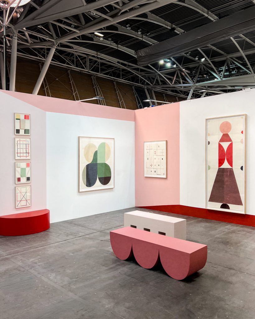 Vista del estand de Rosa Santos (Valencia, Madrid) con obras de Marina González Guerreiro en Artissima 2025. Cortesía de Rosa Santos.