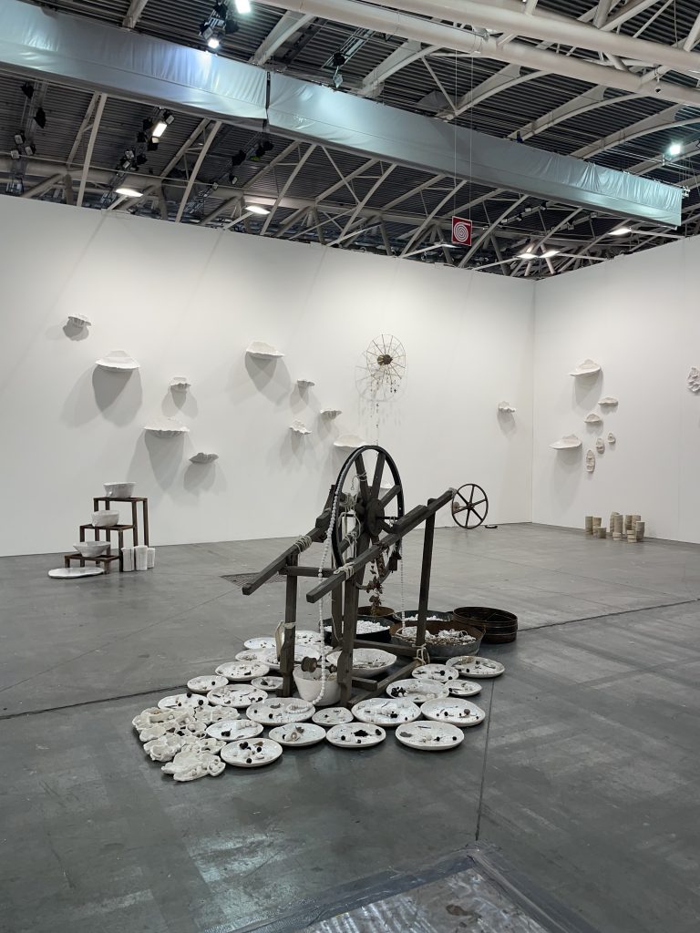 Vista del estand de Alzueta (Barcelona, Madrid, Paris, Casavells) con obras de Sabine Finkenauer en Artissima 2025. Cortesía de Alzueta.