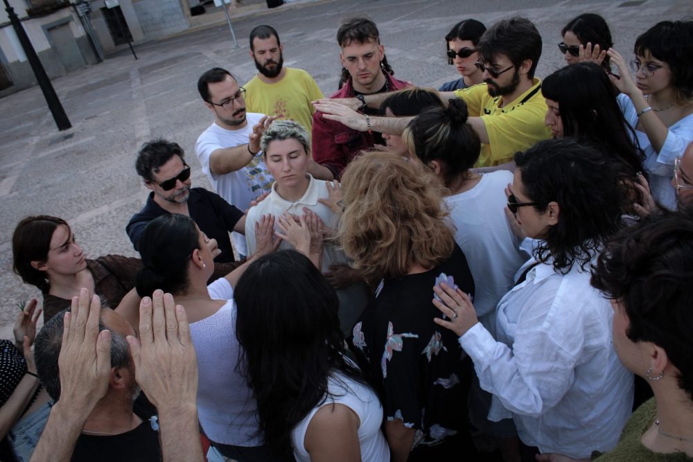 Aunque la comitiva que viajamos desde Madrid llegamos a mitad del programa, el pulso del festival ya latía con intensidad. En las conversaciones entre cuerpos y aperitivos, se filtraban ecos de lo vivido en los días anteriores: se hablaba con asombro de Abisal de Venérea, una propuesta que según decían, sumergía al público en una atmósfera líquida y ritual, donde lo queer se desplegaba como lenguaje y cómo trance. También se mencionaba Teorema Jacuzzi, la performance de Rafa Bodgar y Zony Gómez, descrita como una experiencia sensorial que desbordaba los límites entre lo íntimo y lo político, entre el placer y la crítica. Devotion, de Hector Fuertes, parecía haber dejado una huella profunda: se hablaba de cuerpos entregados a una liturgia íntima, de una devoción que no era religiosa sino afectiva, encarnada, vibrante. Incluso quienes no estuvieron presentes en la primera jornada hablaban con admiración del encuentro con la pieza de Alejandro Cerón: La huerta es un cálculo a ojo. El camino al trabajo es ruina que resonaba como una poética del territorio. Su intervención sobre el escombro y la huerta fue descrita como un gesto poético de arqueología sensible que convertía el residuo en archivo, la tierra en memoria, y la ruina en posibilidad.